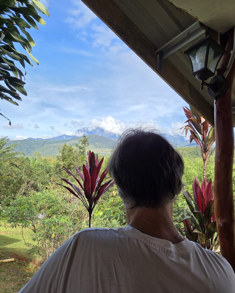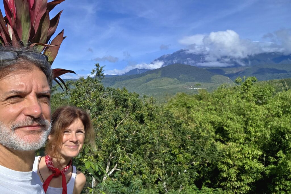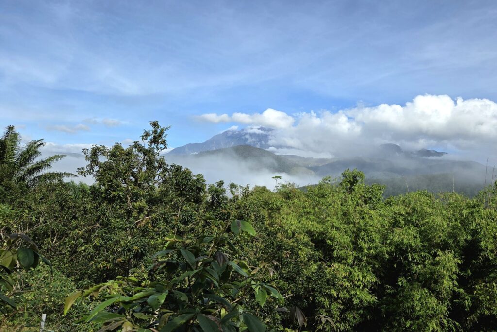 Z tego powodu zamieszkaliśmy w prostej chatce nad deszczowym lasem, z małą bambusową werandą, z której rozpościerał się widok na Kinabalu, który jest najwyższym szczytem Malezji.