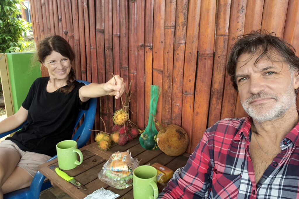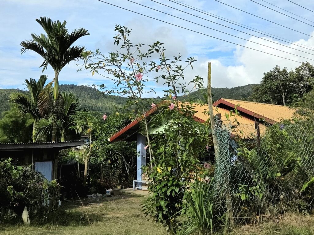 Szukając ciszy i kontaktu z przyrodą, zamieszkaliśmy w wiosce Kampung Marakau. To wioska oddalona od Ranau o jakieś 4-5 km. Naszym tymczasowym domem stała się chatka obita bambusem, umiejscowiona nad lasem deszczowym, z małą werandą, z której roztaczał się trójpoziomowy widok – na ogród z tropikalnymi owocami i mały kurnik, na las deszczowy – i wreszcie na Kinabalu, najwyższy szczyt Borneo i Malezji. Nie było tu specjalnych udogodnień, automatów z kawą i innych rzeczy, do widoku których człowiek tak łatwo się przyzwyczaja, był za to szum lasu, świergot ptaków, pianie koguta i odgłos deszczu padającego nocą nad okolicą.